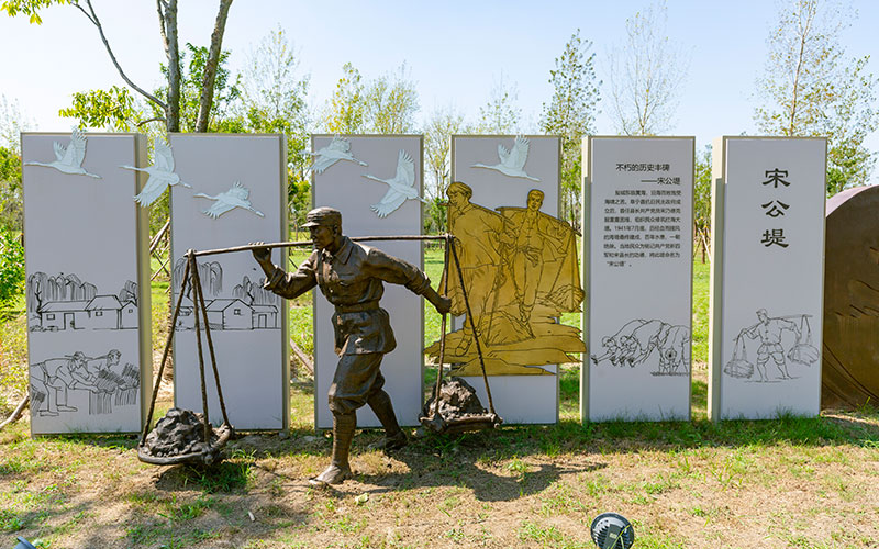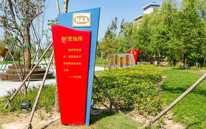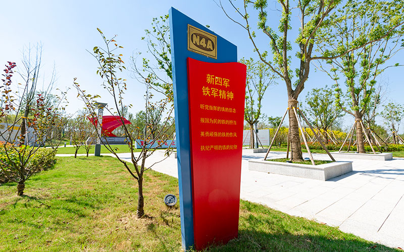 新四軍文化林,位于鹽城經(jīng)濟技術(shù)開發(fā)區(qū),北起團結(jié)河,南至鹽瀆路,東側(cè)毗鄰鹽城市委黨校,西至通榆河河坎,總面積315畝,總投資約1億元,已于2021年4月竣工。新四軍文化林以自然林帶為背景,鐵軍文化為核心,整合四季景觀,追憶新四軍英雄史詩,通過“聽黨指揮、報國為民、英勇頑強、戰(zhàn)地黃花、執(zhí)紀嚴明、經(jīng)濟建設(shè)、團結(jié)統(tǒng)戰(zhàn)、旌旗獵獵”八大版塊,以人物故事、感人事跡串點成線,通過開放、共享的休閑觀光形式向廣大市民和培訓學員宣傳新四軍鐵軍精神和鐵軍文化,從革命歷史中感悟和汲取鐵軍精神的強大力量,以樹為碑銘記初心,以林為魂啟迪后人。