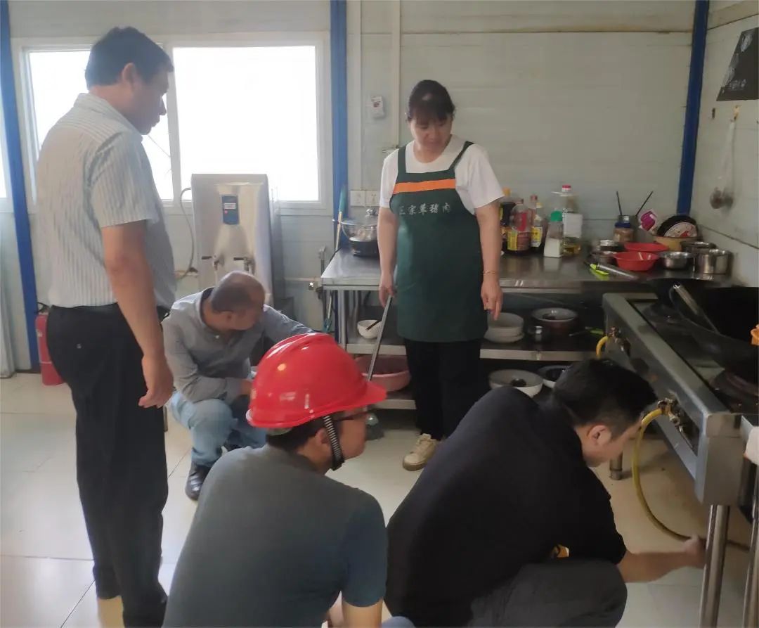 此次檢查行動(dòng),重點(diǎn)排查了項(xiàng)目工地液化氣鋼瓶是否存在占壓、漏氣、銹蝕,灶具連接軟管是否存在老化、開裂、漏氣、接口松動(dòng),燃?xì)庠罹呤欠衽c氣源相匹配、超期使用,已安裝的可燃?xì)怏w報(bào)警裝置是否能正常使用等問題,同時(shí)多角度、全方位向食堂工作人員講解燃?xì)獍踩R,提醒定期對液化氣瓶的連接軟管、灶具開關(guān)、減壓閥等進(jìn)行檢查,全面提升工作人員的燃?xì)獍踩庾R及異常情況應(yīng)變處置能力。